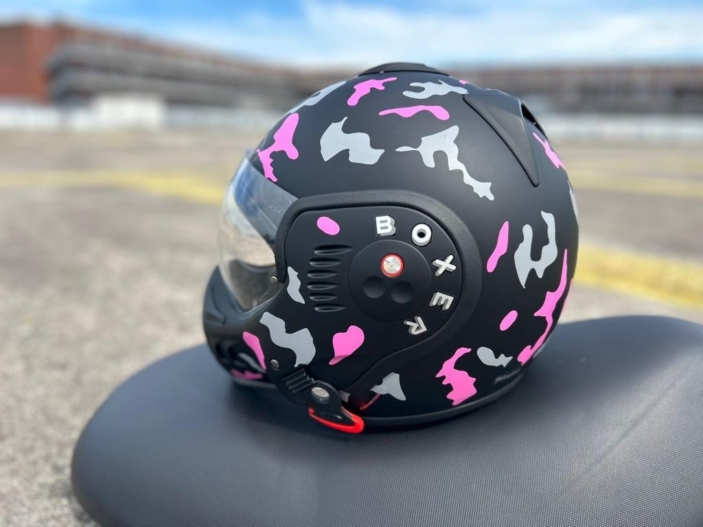 Deze sticker is geschikt voor alle soorten helmen. Helmen zoals de boxer of de shark helm.